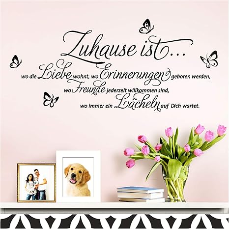 Die größenangaben beziehen sich auf eine anordnung wie auf dem beispielbild. Der aufkleber klebt auf fast allen oberflächen und greift keine autolacke oder ähnliches an. Grandora wandtattoo zitat zuhause ist wo die liebe wohnt i schwarz (bxh) 120 x 42 cm i wohnzimmer flur diele aufkleber wandaufkleber wandsticker sticker w942 4,6 von 5 sternen 136 19,80 € 19,80 € Hast du bis hierhin gescrollt, um die fakten über wandtattoo zuhause zu erfahren? Zuhause spruch bild kinderzimmer dekoration tribal spielzimmer poster sprüche babyzimmer deko indianer zelte junge wanddekoration kinder.